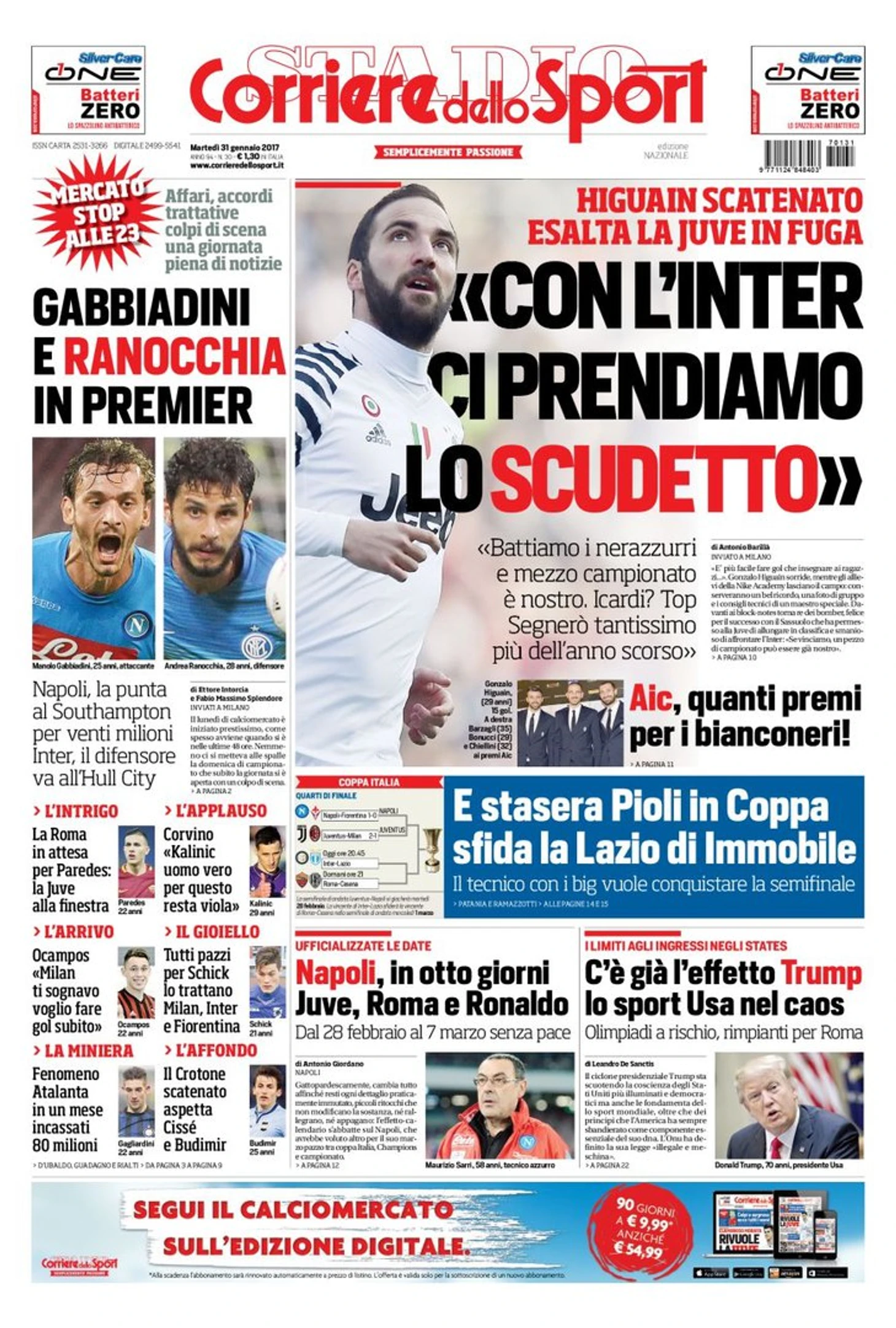 «Мечты о славе». Заголовки Gazzetta, TuttoSport и Corriere за 31 января