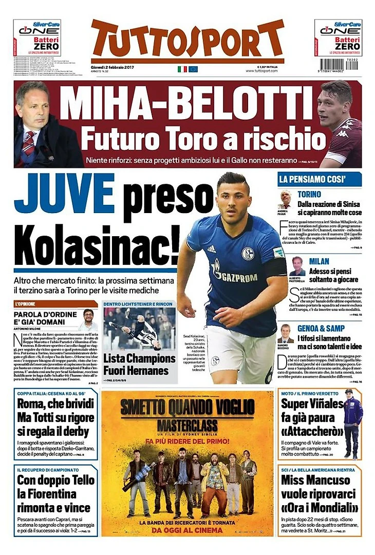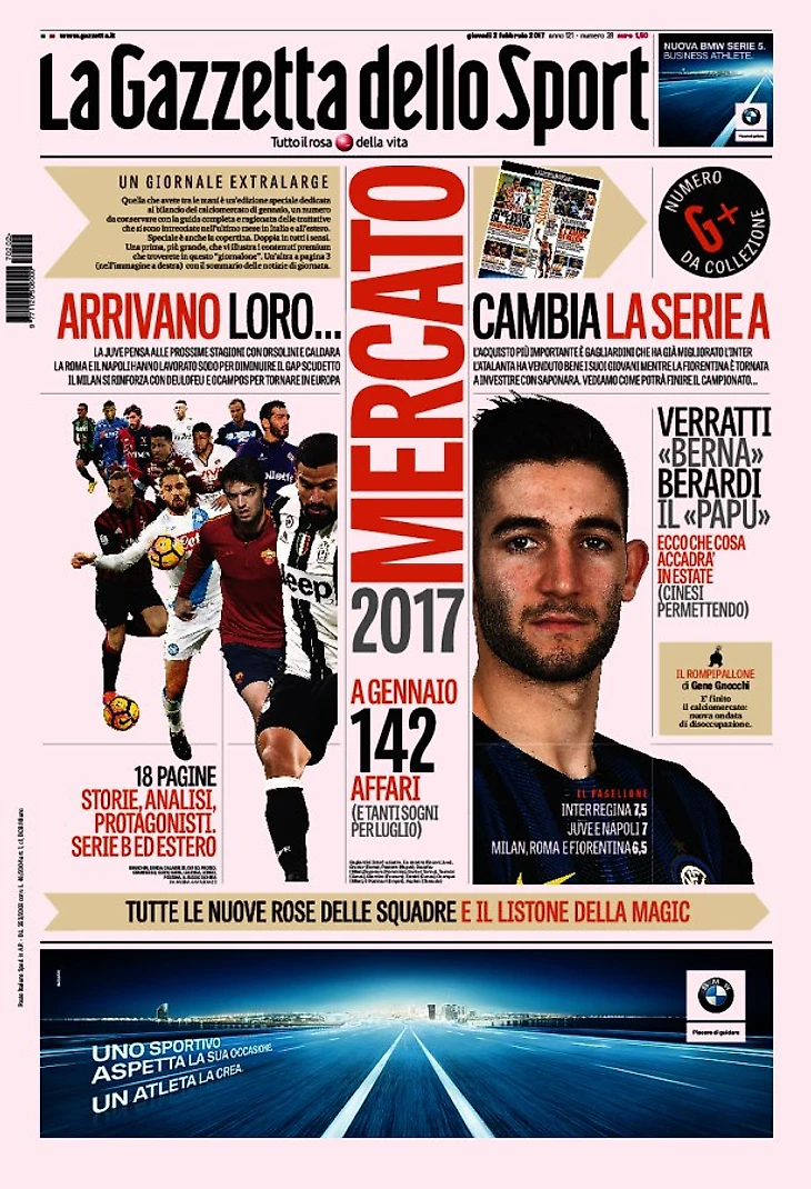 «Рынок-2017». Заголовки Gazzetta, TuttoSport и Corriere за 2 февраля