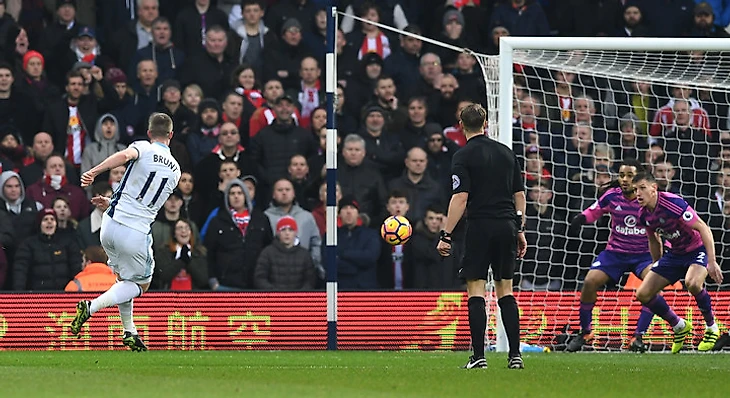 Смена расстановки «Сандерленда» не сработала. Дэвид Мойес решил сыграть против «Вест Бромвича» по схеме, аналогичной той, что использовал «Тоттенхэм» неделю назад – 3-4-2-1. Но Пулис сделал определенные выводы из матча недельной давности, и в защите игроки «Вест Брома» уже не образовывали шестерку защитников. Если Филлипс шел за ван Анхольтом и занимал позицию крайнего защитника, то Шадли оставался на своей позиции, и Джонсу противостоял Брант. То есть теперь при обороне получалось не 6-3-1, как неделю назад, а 5-4-1, из-за чего «котам» не удавалось создать численный перевес в центре.
