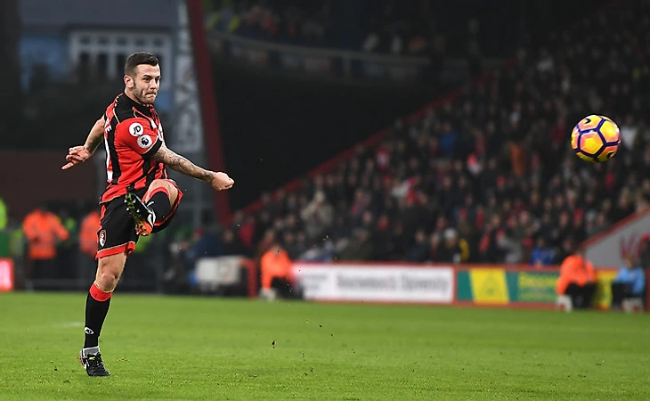 Фланговые атаки «Борнмута». «Борнмут» только 23% атак провел через центр, основной упор был сделан на фланги. За счет скорости Фрэйзера, техники Станисласа, подключений Дэниэлса и Смита вингбэки «Уотфорда» нуждались в подстраховке, что чаще всего приводило к следующему варианту: на фланг смещались крайние центральные защитники, Капу опускался ниже, Дукуре чаще всего тоже страховал фланг, и в опорной зоне свободное пространство и время получал Джек Уилшер, который отдавал проникающие передачи в штрафную и пару раз выходил на ударную позицию.