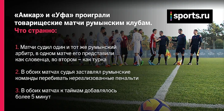 Румынская газета Gazeta Sporturilor провела расследование и выяснила, что на Кипре и в Турции в январе работала настоящая группировка – по всей видимости, связанная с букмекерами. За 9 дней румынские судьи под именами иностранцев отсудили 5 контрольных матчей с участием румынских команд, и «Уфа» с «Амкаром» неудачно попали в их компанию.