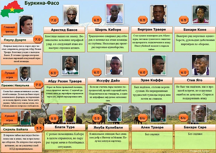 Буркина-Фасо: Коффи, Яго, Дайо, Б.Коне, Кулибали, Каборе (к), Б.Туре (Саре,87), Б.Траоре (А.Траоре, 90+2), Абд.Траоре, Байала (Бансе, 77), Накульма