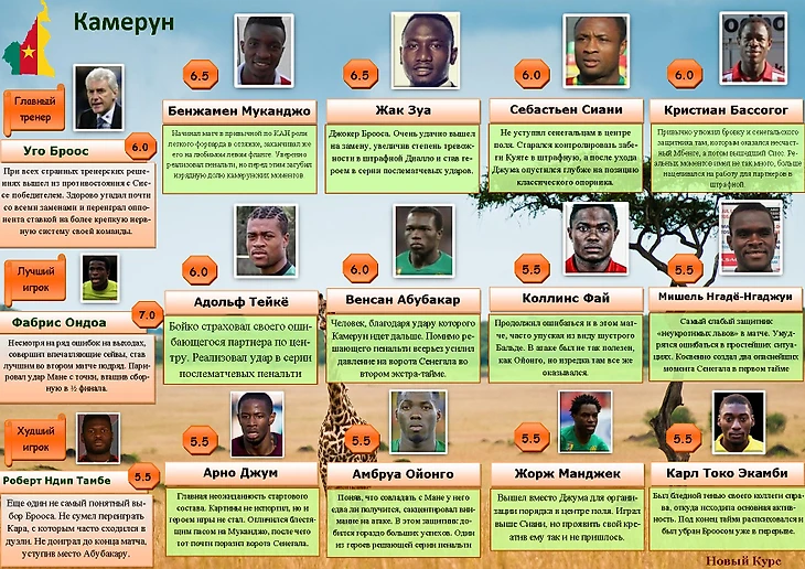 Садьо Мане блестяще отыграл весь турнир. Был он лучшим и во вчерашней встрече. Но именно его удар с одиннадцатиметровой отметки, отражённый Фабрисом Ондоа, стал решающим в серии и похоронил шансы «львов Теранги» на выход в полуфинал.