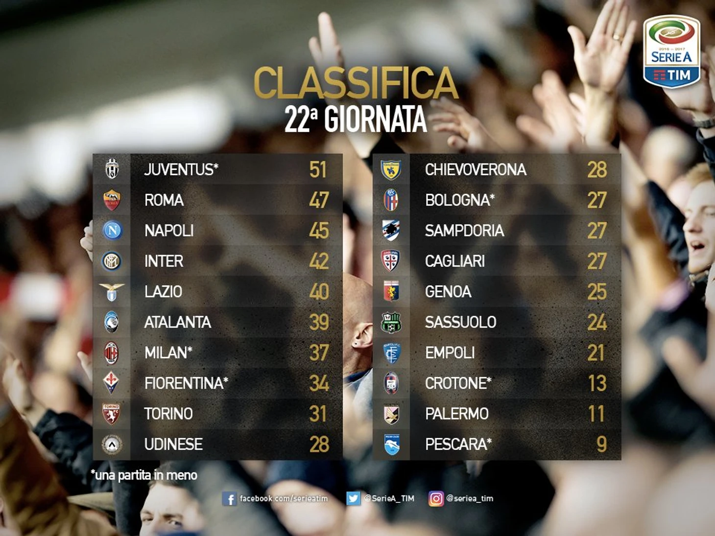 Неужели сказка, начавшаяся в матче с Сассуоло, закончилась? Грустно, если учесть, что и основные конкуренты тоже проиграли. Сампдория смогла победить Рому. Милану с ней тоже легко не будет. Мы так никем и не усилились. А начиналось всё так хорошо... И снова 7-е место.