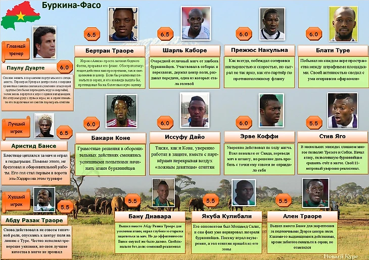 Буркина-Фасо: Коффи, Яго, Дайо, Коне, Кулибали, Каборе, Туре, Б. Траоре, Абд. Траоре (Диавара, 80), Накульма, Бансе (Ал. Траоре, 103)