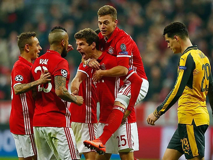 Тогда же и играли "Бавария" с "Арсеналом". Всем было понятно, что Арсен влип - но никто не ожидал, что настолько! Да, лондонцы смотрятся слабее немцев, но и "Голливуд" первую половину сезона в Бундеслиге не очень убедительно провёл. И в первые 45 минут идея со стягивающим на себя защитников Санчесом и врывающимся Озилом отлично работала, ибо "Бавария" первую половину тайма просто выбрасывала мяч куда подальше. И если бы не Нойер, то неизвестно, с каким бы счётом закончились 45 минут. После перерыва немцы начали вспоминать, как правильно атаковать,. И тут проснулся Левандовски, безбожно мазавший в первом тайме. И за 10 минут баварцы разносят "канониров"!