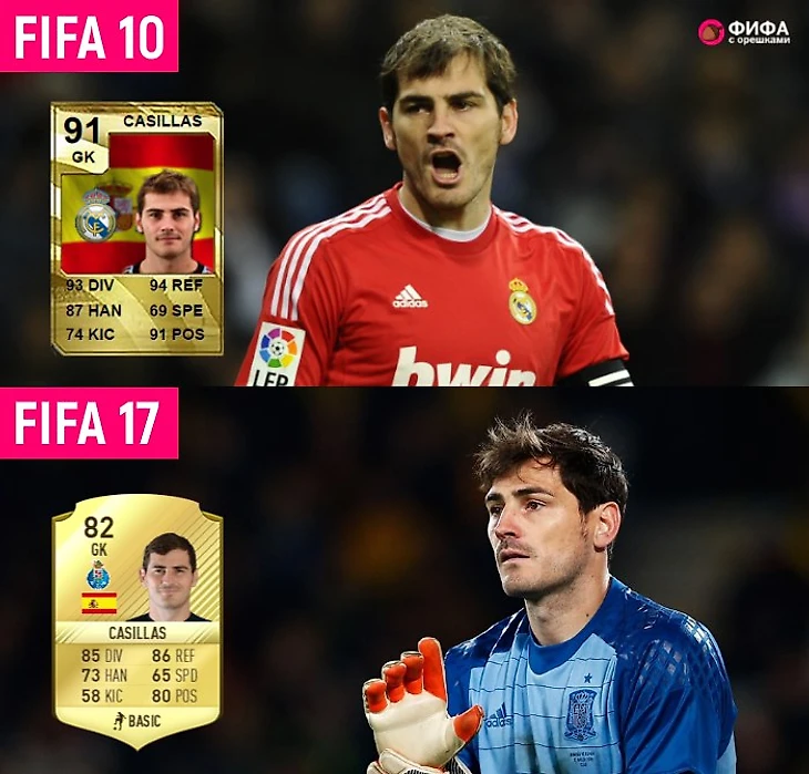 Крах рейтинга Касильяса от FIFA 10 к FIFA 17