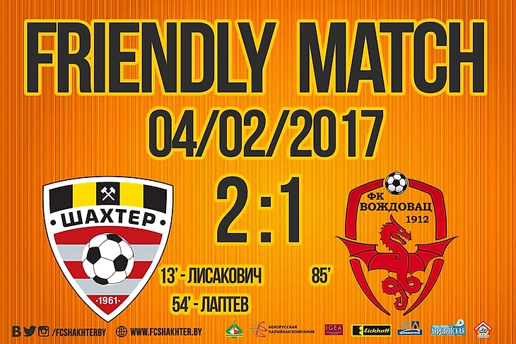 Шахтер: Бушма — Бурко, Янушкевич, Рыбак (к), Позняк — Ковалев, Олехнович, Аликсиевич, Лисакович — Януш, Хижниченко. На замену выходили: Шибун, Селява, Лаптев, Матвейчик, Сенько, Црепуля, Багарич . Голы: 1:0 — Лисакович (13, пас — Олехнович). 2:0 — Лаптев (54, пас — Хижниченко). 2:1 — (85).