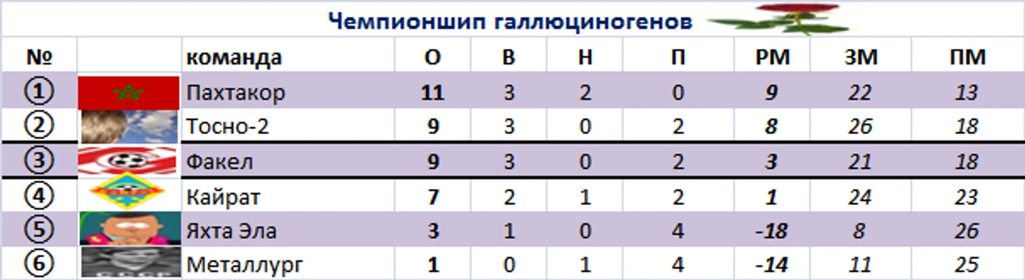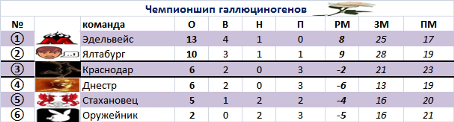 На нейтральное 3-е место претендуют Краснодар с Днестром, у которых по 6 очков, и отстающий от них на 1 пункт Стахановец.