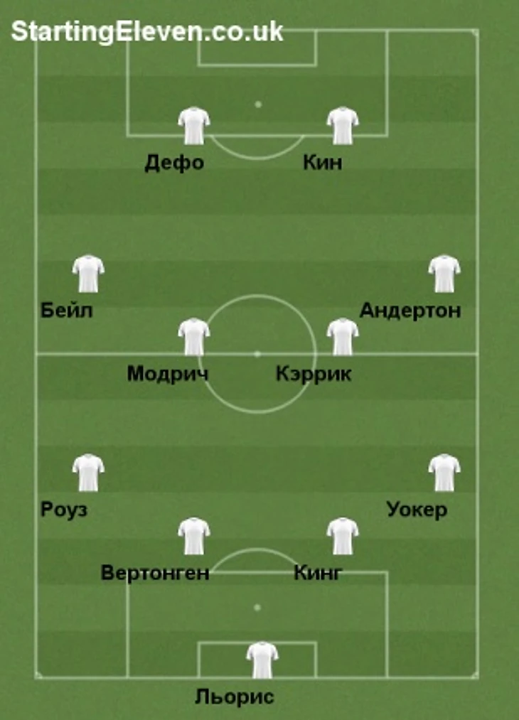 Пол Робинсон, Майкл Доусон, Бенуа Ассу-Экотто, Аарон Леннон, Рафаэл ван дер Ваарт, Димитар Бербатов, Гарри Кейн