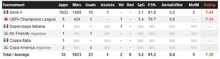 Во-вторых (или пункт 1.1 - как пожелаете), сезон 15/16 выдался самым результативным в карьере аргентинца (еще в бы в копилку Копа Америка… эхх): 38 голов в 42 матчах (36 - в чемпионате и 2 - в Лиге Европы). В среднем - 0,9 мяча за игру. Если подзабыть про космическую статистику Лео Месси и Криштиану Роналду, то цифры Гонсало выглядят весьма и весьма недурно.