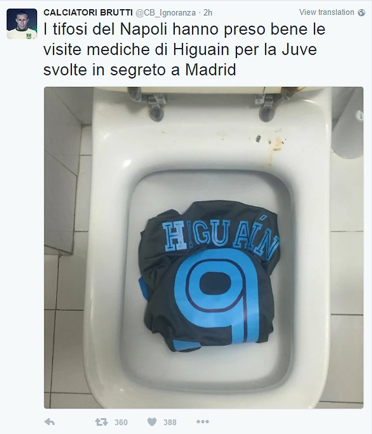 Единственными, кто остался недоволен этим переходом, оказались болельщики “Наполи”. Гнев итальянских тиффози - штука вообще опасная. А тут еще и один из лучших игроков уходит к прямому конкуренту (за это он даже своеобразную кличку получил - Иудаин). Ниже приведенные фотографии лучше любых слов опишут эмоции неаполитанских болельщиков.