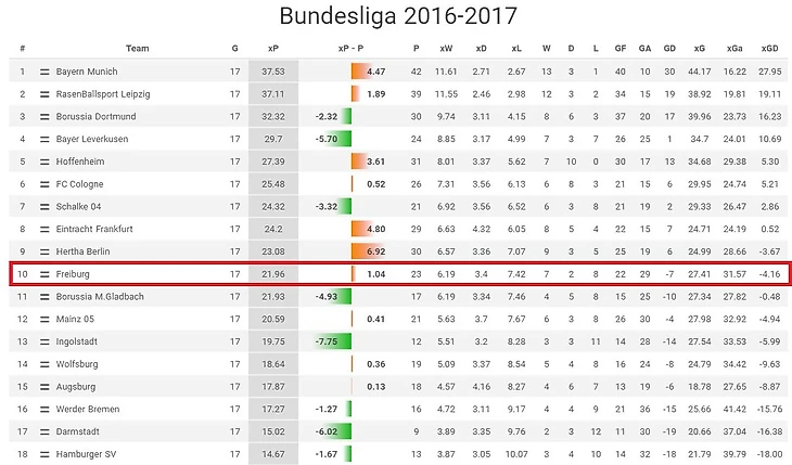 Фрайбург - середняк этого сезона. Находятся на 8 месте, но от того же 13го их отделяет всего 4 очка, а до 7го уже 6. По xG тоже в середине – на 10 месте. Собственно, где-то в пределах 8-13 строчки они и закончат, скорее всего.