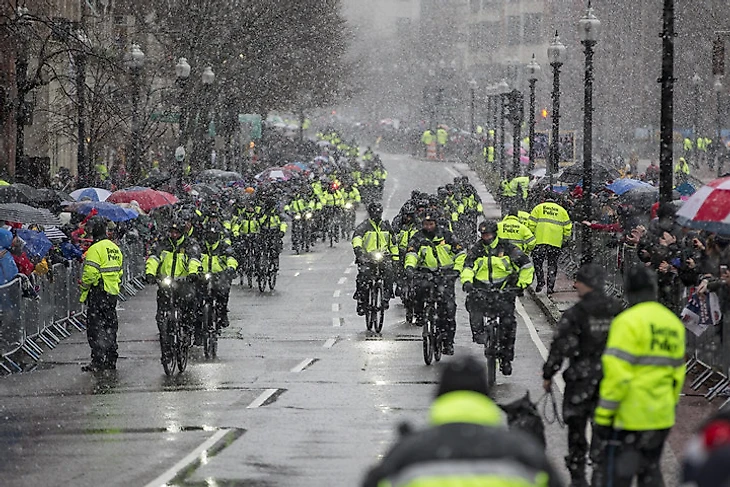 Болельщики заранее пришли на Copley Square. Начало парада было запланировано на 11.00 по местному времени.
