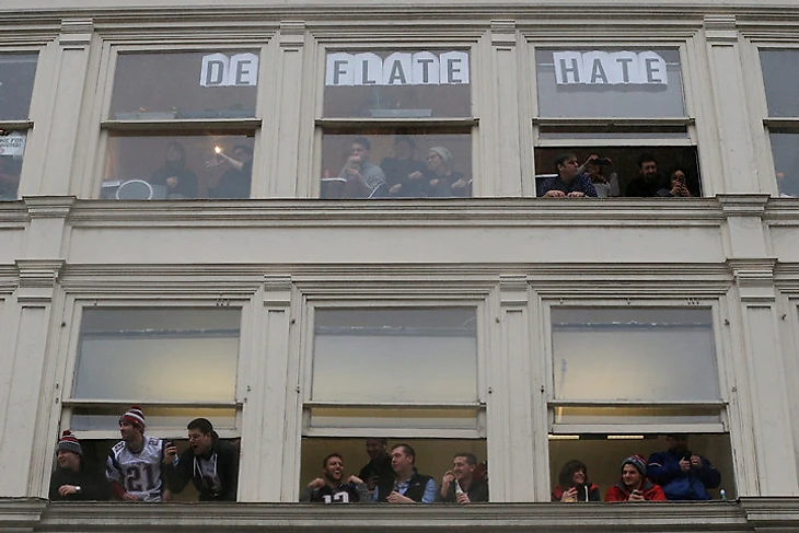 Намек на Deflategate - странный скандал со спущенными мячами два года назад. Из-за него Брэди пропустил первые 4 игры в этом сезоне, а клуб оштрафовали на миллион долларов. Теперь комиссионер НФЛ Роджер Гуделл – самый ненавистный человек для всего Массачусетса.