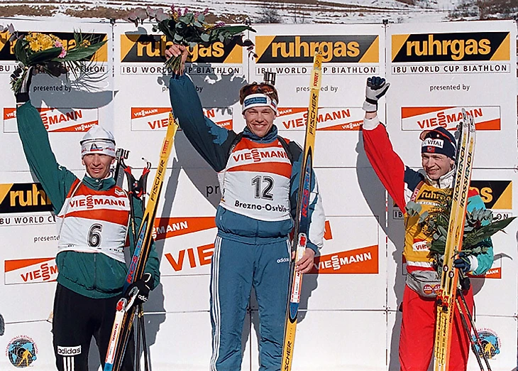 Посмотрите на эту фотографию: Уле Эйнару всего 23 года (почти не изменился!). Он только делает большие шаги в биатлоне – первая победа в Кубке мира пришла к нему годом раньше (январь 1996-го), а первая большая победа – и сразу олимпийская – придет в 98-м на Играх в Нагано.