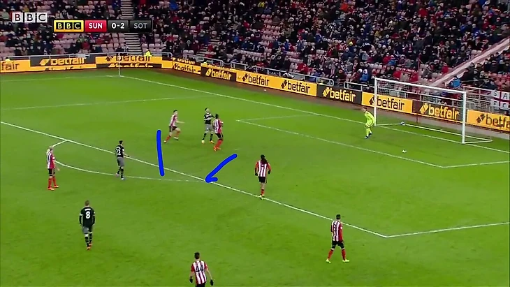 Как можно играть настолько беззубо? Одним пасом центральный защитник "святых" отрезает сразу троих(!!!) полузащитников Сандерленда. Неужели Моейс не научил грамотно располагаться? Вопросов много.