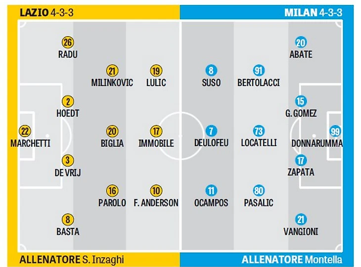 Ориентировочные стартовые составы от La Gazzetta dello Sport.