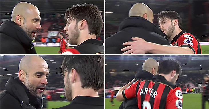 После финального свистка матча 25-го тура АПЛ между «Борнмутом» и « Манчестер Сити» Гвардиола подошел к полузащитнику «Борнмута» Гарри Артеру и выразил соболезнования в связи со смертью новорожденной дочери в 2015 году.