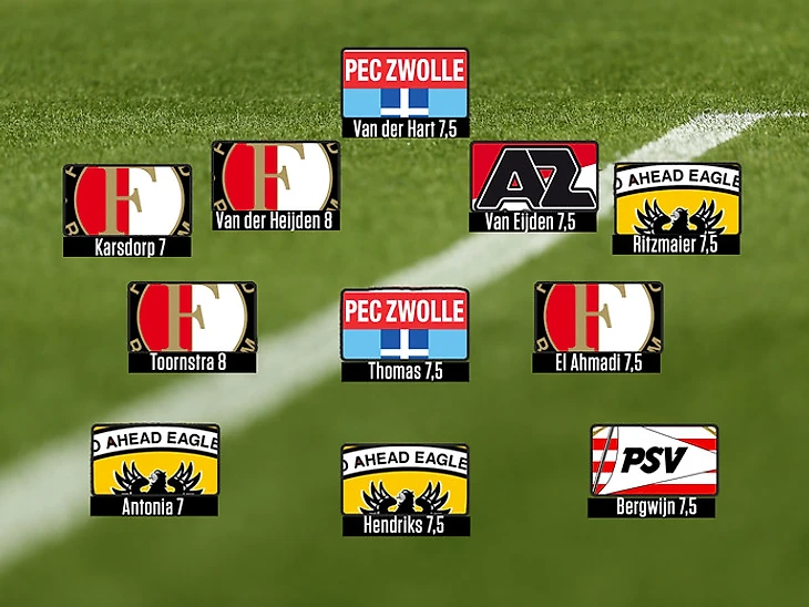 В тройке лидеров нет никаких изменений. Растут отрывы от 4-го места, но гандикапы между «Фейе» и «Аяксом», а также «Аяксом» и ПСВ остаются прежними. На 4-е место вышел АЗ, но борьба за еврокубки в самом разгаре и нет сомнений, что всё ещё по несколько раз будет меняться. «Ден Хааг» впервые опустился на последнюю строчку, а вот «Гоу Эхед Иглс» благодаря двум викториям поднялся на безопасное 14-е место.