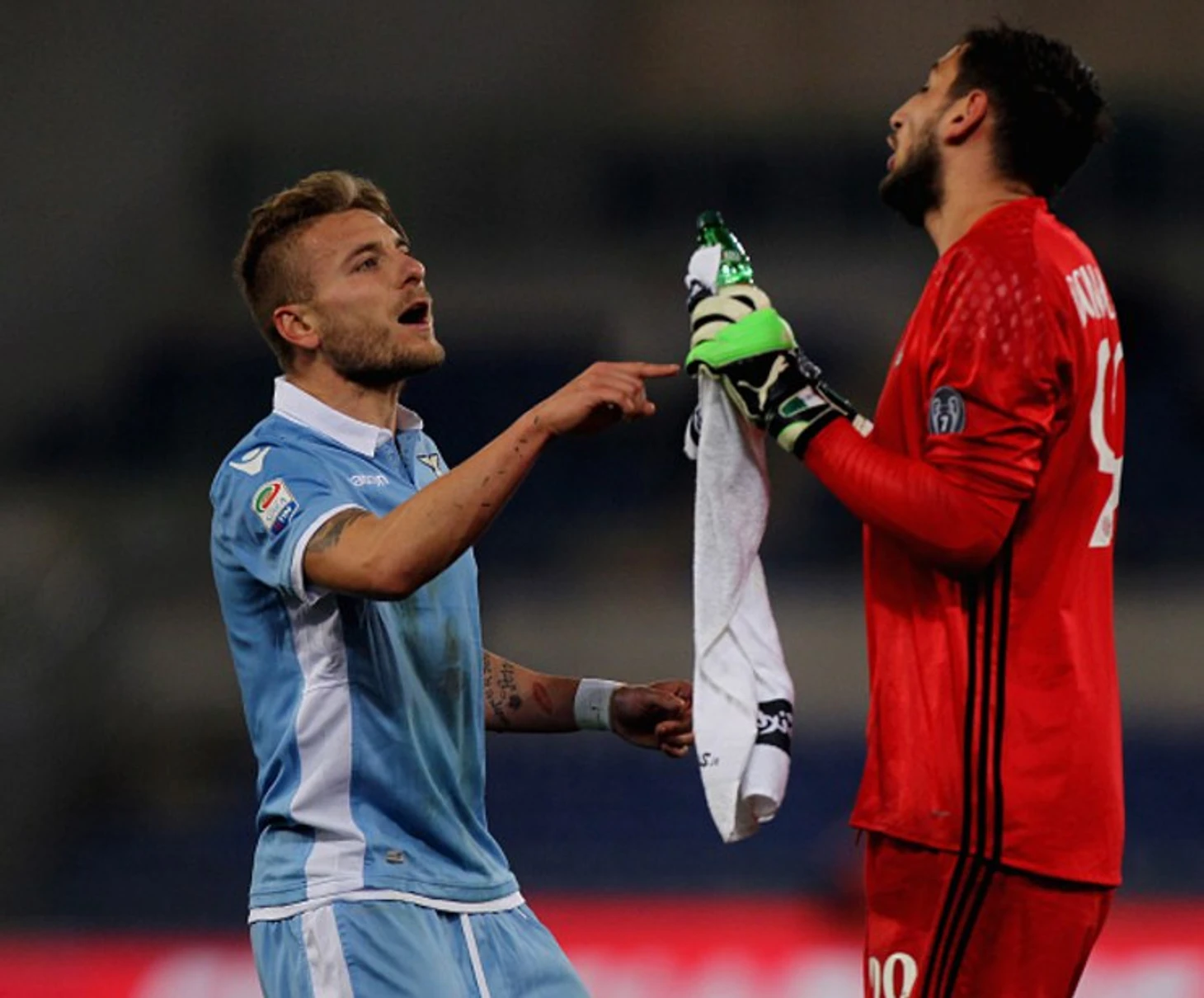 В первом тайме «бьянкочелести» владели подавляющим преимуществом, заставив Джанлуиджи Доннарумму с первых минут в поте лица. Голкипер «Милана» предстал во всей красе, отбив несколько очень опасных ударов и вообще парировав большое количество ударов в створ.