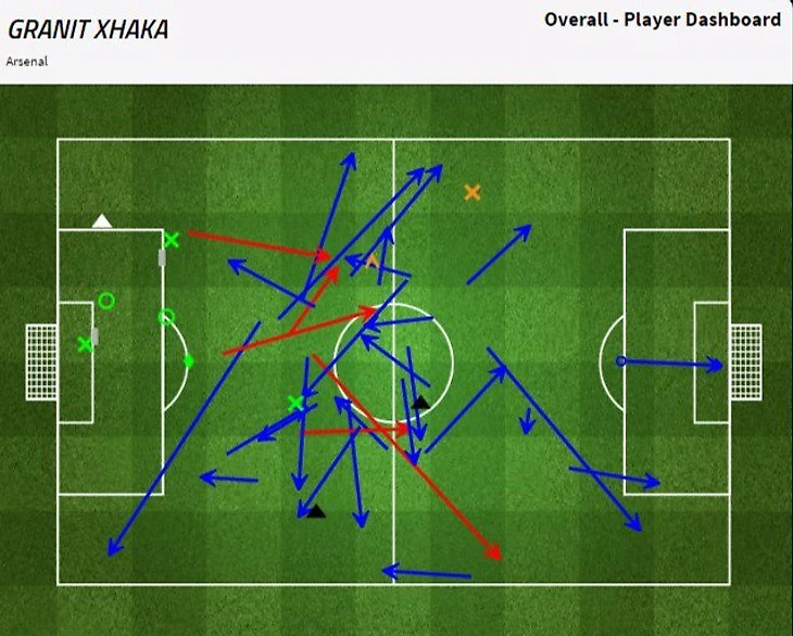 Вопрос по позиционной игре актуален и к переходу из обороны в атаку. Осуществлялся переход через фланги, где «Бавария» имела преимущество, но ни разу «Арсенал» не воспользовался свободными зонами в центре поля. Непозволительно мало передач для «бокс ту бокса» сделал Гранит Джака, что подтверждает низкое качество наигранности позиционных атак через центр.