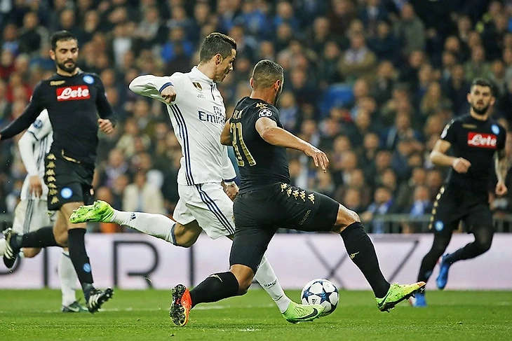 В начале встречи показалось, что клуб из Неаполя доставит очень много проблем своими контратаками. Но после того, как «Наполи» забил быстрый гол, они испугались. «Наполи» совершенно перестал проводить контратаки и сильно прижался к своим воротам, это позволило королевскому клубу забирать все подборы у чужих ворот и продолжать давление на ворота Пепе Рейны. Это давление сказалось и «Реал» забил закономерный гол. После пропущенного гола в игре «Наполи» ничего не изменилось. Если бы на месте Бензема был Мората, то скорее всего, уже на перерыв мадридцы бы уходили ведя в счете.