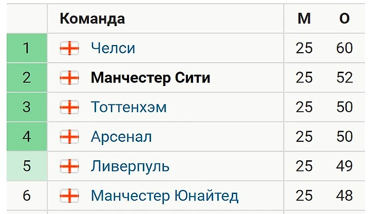 "Горожане" в свою очередь потихоньку сокращают отрыв от команды Абрамовича, уверенно двигаясь вверх. В последнем матче обыгран в гостях "Борнмут" - 2:0. Несмотря на неудачное выступление в Кубке Лиги (с минимальным счетом уступили "Манчестер Юнайтед"), продолжают выступление в Премьер-лиге, Кубке Англии и Лиге Чемпионов. В предыдущих раундах Кубка страны обыграли в гостях "Вест Хэм" (5:0) и "Кристал Пэлас" (3:0).