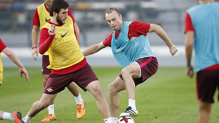 Георгий ДЖИКИЯ и Денис ГЛУШАКОВ на тренировке "Спартака". Фото Александр СТУПНИКОВ, ФК "Спартак"