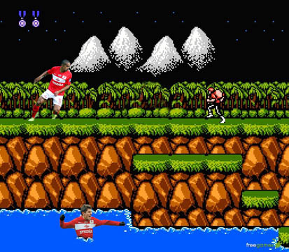 Не менее интересная новинка - игра Contra. Как всегда двум парням - посветлее и потемнее, надо пройти кучу зон. Цель игры - получить паспорт для темненького.