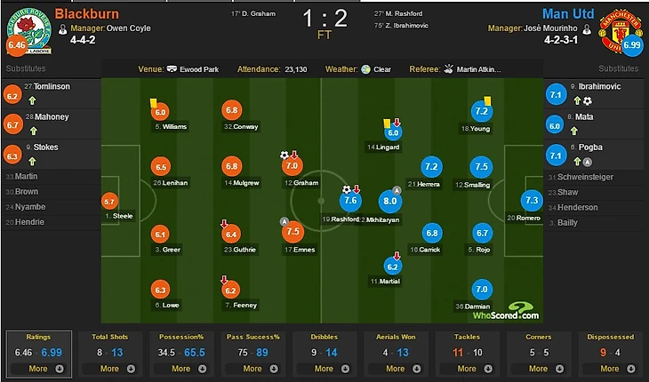 Отчет игры «Блэкберн» и «Манчестер Юнайтед»