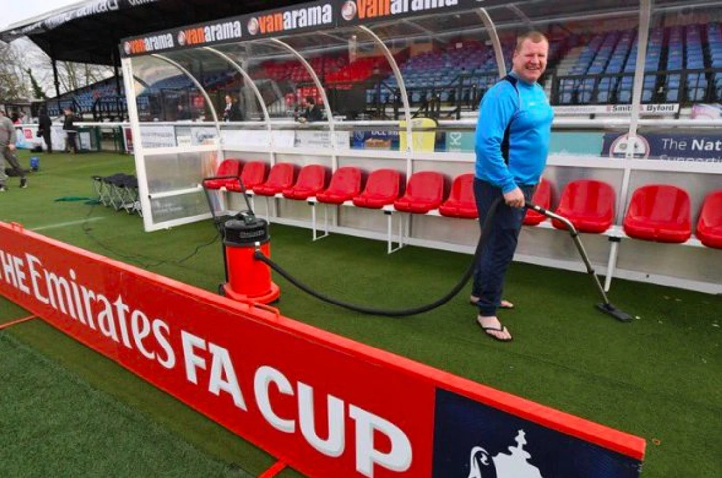 А перед матчем он пылесосил у скамейки запасных.