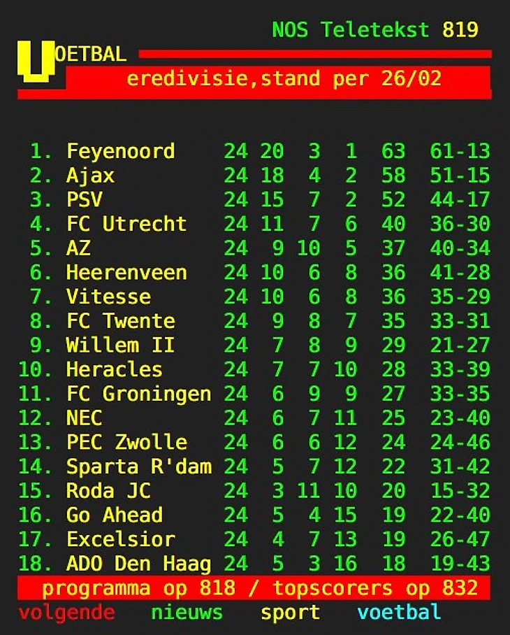 - Впервые в истории «Фейеноорд» набрал столько очков за 24 игры. 63 балла!