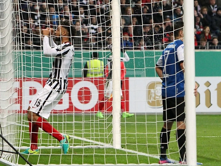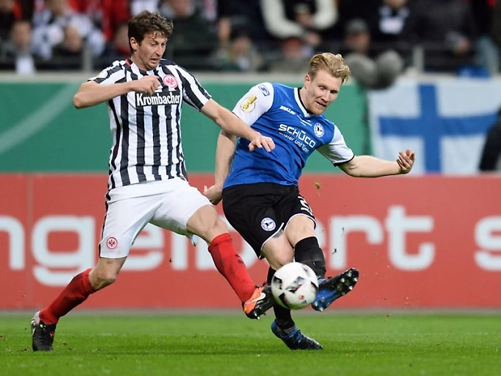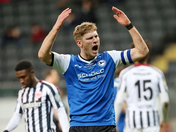 Капитан Фабиан Клос пытается завести команду. Но усилия гостей не увенчались успехом. "Арминия" превзошла "Айнтрахт" по ударам (17:9), но забить так и не сумела. "Айнтрахт" одерживает трудовую победу и проходит в полуфинал, впервые с 2007 года