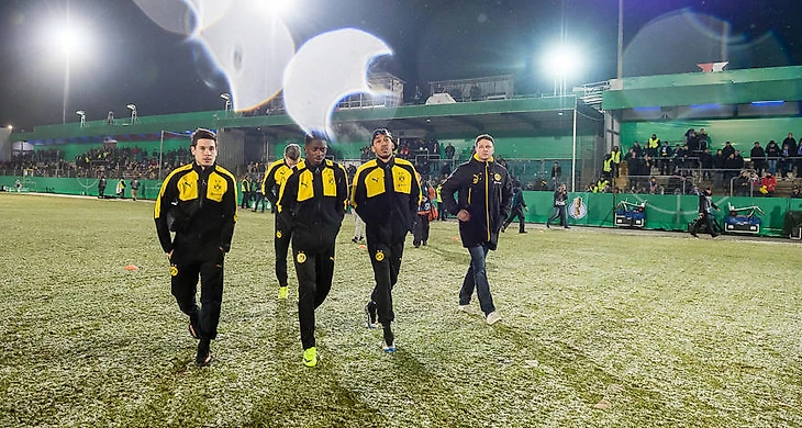 "Я не могу гарантировать, что после игры на этом поле футболисты останутся здоровыми. Это самая большая забота для меня. Поле для игры непригодно из-за снегопада, поэтому, мы решили отменить игру" - Феликс Брых, арбитр встречи "Лотте" - "Боруссия", принял абсолютно верное решение, огород - не место для игры в футбол.