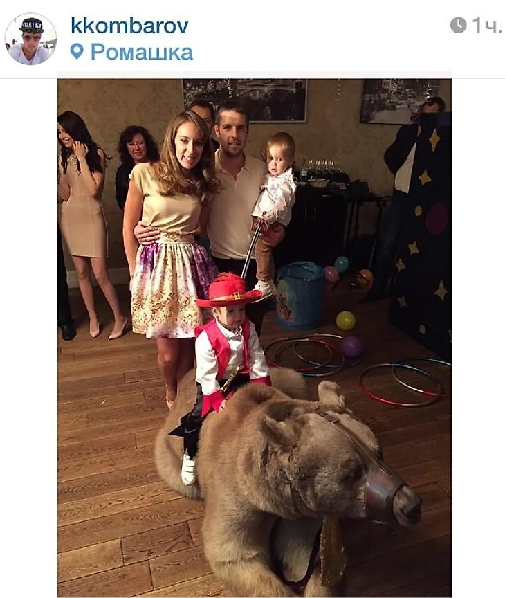 Правда, три года назад брат Дмитрия Комбарова сделал более впечатляющий поступок. Кирилл Комбаров арендовал вполне взрослого медведя на день рождения сына, и покатал ребенка на животном.