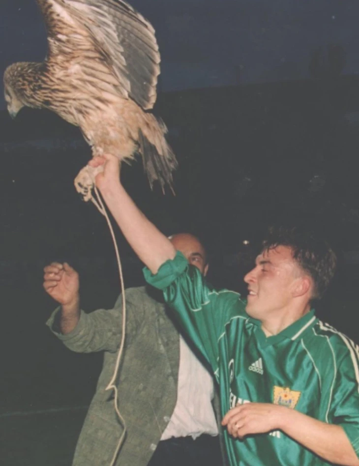 В сезоне-2000 «Анжи», которым руководил Гаджиев, занял четвертое место в чемпионате России, а тархановские «Крылья» были 14-ми. Дагестанская команда выиграла тогда дома со счетом 1:0, а ответный матч завершила вничью – 1:1. Футболисту Гудкову, забившему победный гол в первом матче, счастливые земляки подарили тогда… настоящего живого горного орла. А ответный матч стал дебютным в высшей лиге для Андрея Каряки, и он, только появившись на поле, сотворил пенальти в ворота команды, которой руководил его нынешний шеф.