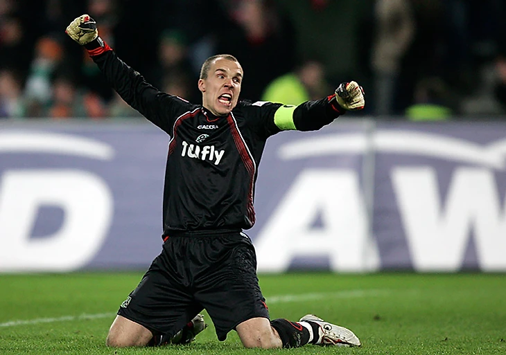 Энке мог поиграть и у Фергюсона. Тот звал в «МЮ» летом 2001-го, руководство «Бенфики» намекало, что хорошо бы согласиться – уж больно нужны деньги, но Роберт отказался, потому что Фергюсон видел его только дублером Фабьена Бартеза. В двадцать четыре года Энке стал капитаном «Бенфики». Остальные игроки менялись так часто, что уже на третий сезон в «Бенфике» он ощущал себя главным долгожителем. Кадровая текучка привела к тому, что весной 2002-го клубный бухгалтер по ошибке отдал чек с зарплатой Энке другому блондину, шведу Андерсу Андерссону – немецкий писатель Рональд Ренг рассказал об этом в своей книге об Энке.