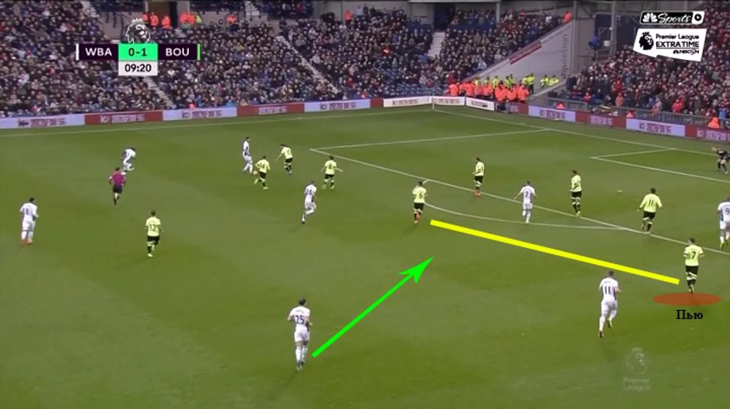 «Борнмут» против стандартов «Вест Брома». «ВБА» чрезвычайно опасен на стандартах – уже 16 голов в этом сезоне. Даже если вычесть прямые удары со штрафных, то все равно будет больше всех. Против «Борнмута» – персональная игра на стандартах плюс один из худших вратарей АПЛ по игре на выходах – подход Пулиса с заслонами и намеренными подачами Криса Бранта во вратарскую возымел успех – победный мяч, плюс отмененный гол из-за небольшого офсайда, плюс еще несколько неплохих возможностей.