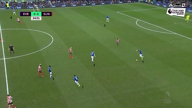 Порой, стянувшись большими силами к мячу, «Эвертон» не находил вариант для постепенного продвижения и лонгболлил. В целом в тактике длинных передач нет ничего плохого, если речь идет о быстрой атаке или имеется перевес (или хотя бы намеки) в зоне мяча, чтобы навязать борьбу за подбор. Хозяева же, как отмечалось выше, в большинстве случаев не имели достаточно людей впереди при таких передачах – так что над поиском баланса в структуре при позиционной атаке Куману еще предстоит работать.