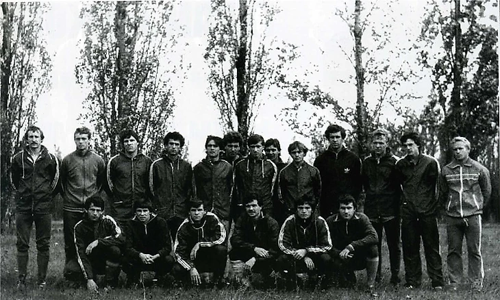 МЕТАЛЛИСТ-84. Одна из самых КОМБИНАЦИОННО-Зрелищных Команд в Чемпионате СССР-1984 г. Слева направо. Стоят: КАМАРЗАЕВ,Тарасов,Бондаренко,Сааков,---,---,ИВАНОВ,МОТУЗ,Сусло,Сивуха. Сидят: ТАЛЬКО,КРАМАРЕНКО,ЯКУБОВСКИЙ,---,Братчиков,Ярмак (подписаны только игроки основного состава)