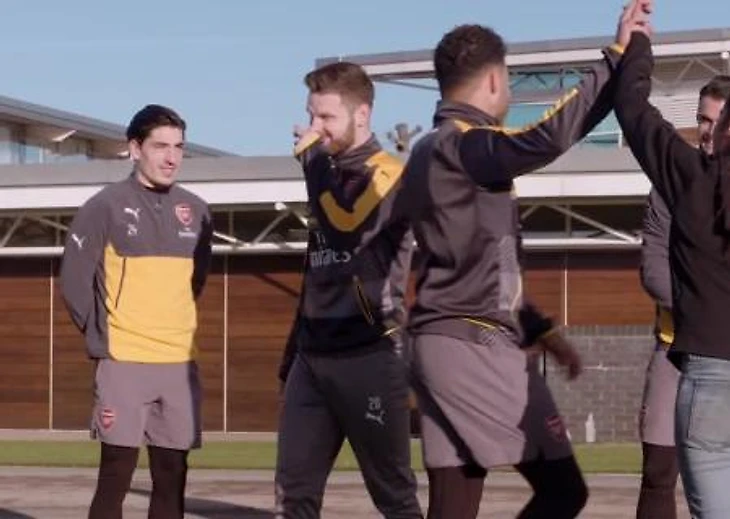 Чемпионка мира по фристайла, Лиза Зимуч, бросила вызов Граниту Джаке, Алексу Окслэйд-Чемберлену, Эктору Бельерину и Шкодрану Мустафи в соревновании nutmeg (пробрасывание мяча между ног соперника)