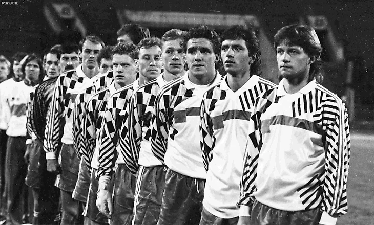1992 год. Москва. Сборная России перед своим первым отборочным матчем, против Исландии (1:0). Справа налево: В.КУЛЬКОВ-И.ДОБРОВОЛЬСКИЙ-С.ЮРАН-В.КАРПИН-С.КОЛОТОВКИН-С.КИРЬЯКОВ-И.ЛЕДЯХОВ-Д.ХЛЕСТОВ-В.ОНОПКО-С.ЧЕРЧЕСОВ-И.ШАЛИМОВ. Очень хотелось тогда верить, что этому составу очень многое окажется под силу, и пусть даже не столько в плане результата и достижения цели, сколько в плане обретения какой-то своей особенной, присущей только русскому и российскому футболу, игровой харизмы или, проще говоря, ИГРОВОЙ ИДЕИ ...