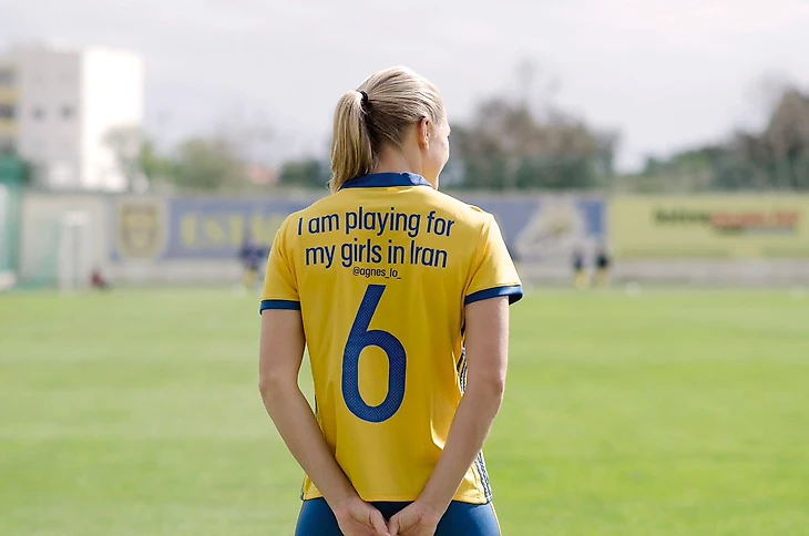Так, на спине капитана женской сборной Лотты Шелин появилась фраза «Никогда не смотри на других свысока, если только ты не помогаешь им подняться». Полузащитник Лиза Дальквист на своей спине разместила фразу популярной скандинавской певицы Зары Ларссон «Поверь в себя, черт побери!». Одно из сообщений адресовало поддержу девушкам в Иране.