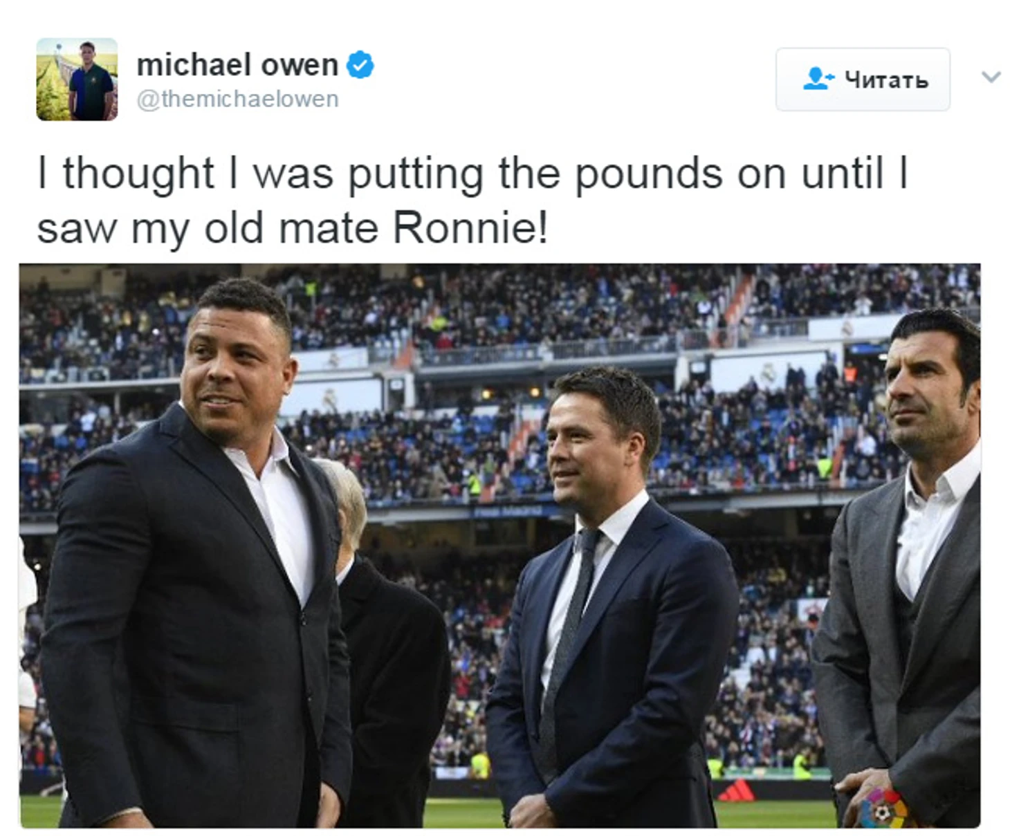 А так бразилец выглядит прямо сейчас. Майкл Оуэн немного удивился: «Я думал, что это я набрал вес, пока не увидел моего старого приятеля Ронни».