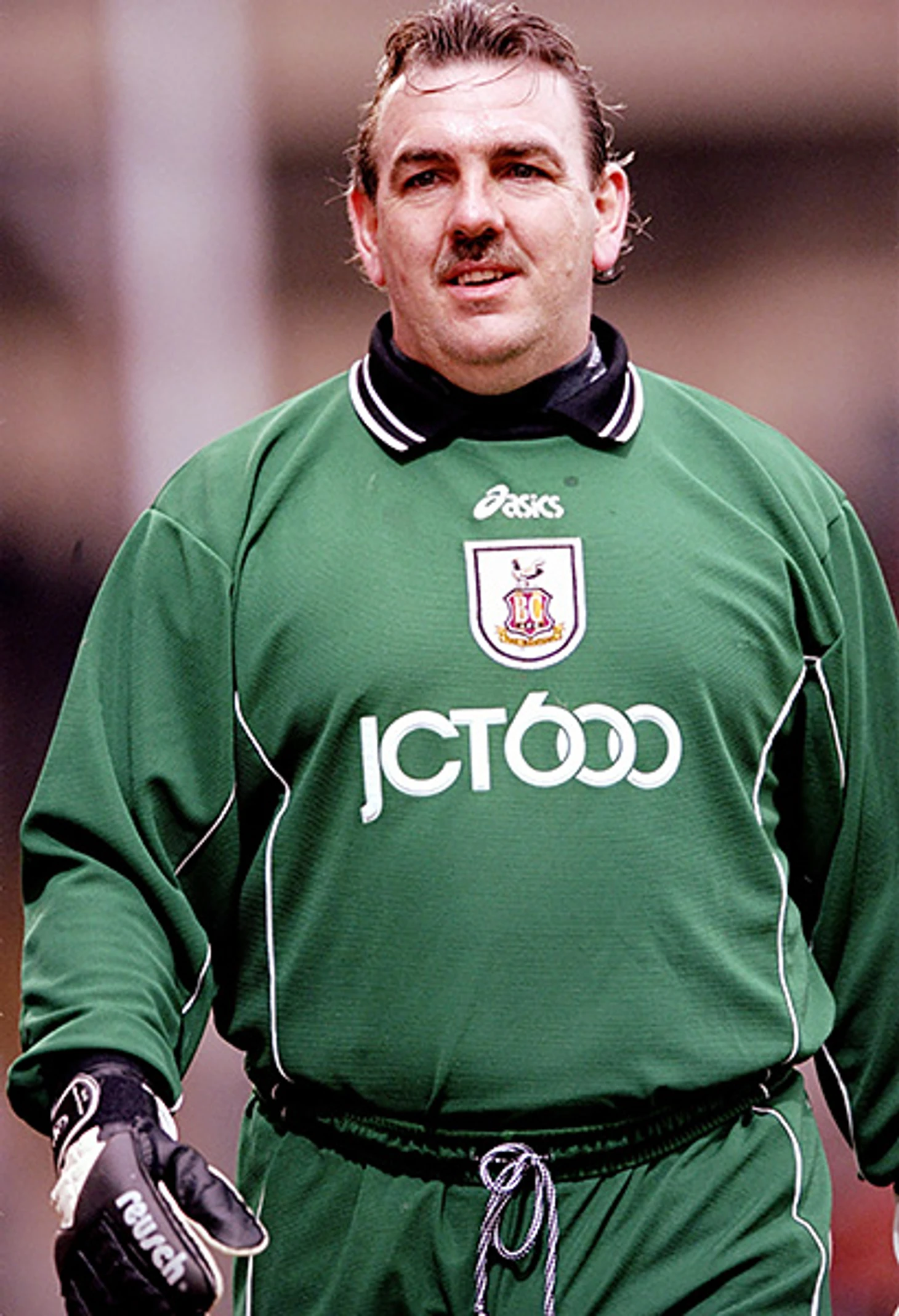 У легенды «Эвертона» Невилла Саутолла 578 игр за клуб. Но на этом фото Летающий Кабан уже в «Бредфорде», когда 41-летнему вратарю внезапно пришлось выйти на поле.