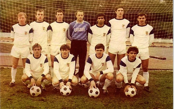 МЕТАЛЛИСТ-1989. Слева направо: сидят: Сусло-ЯКУБОВСКИЙ-Романчук-Яловский. Стоят: РАЛЮЧЕНКО-Деркач-(запасной Назаренко)-Кутепов-АДЖОЕВ-БАРАНОВ-Колоколов. 7 место в Вышей Лиге СССР могло быть и более высоким, если бы не судейство в заключит матче с Черноморцем !..