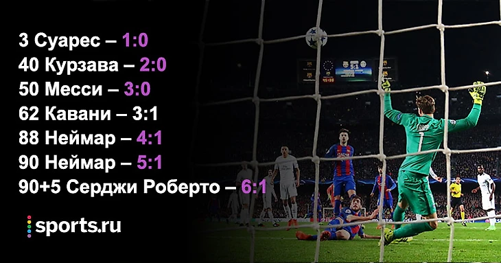 7. «Барселона» так отчаянно тянулась к победе, что ее защитники провели больше времени на половине «ПСЖ», чем на своей (51 процент времени против 49). Начиная с 85-й минуты «Барса» нанесла 6 ударов и забила 3 гола, а «ПСЖ» успешно сделал 4 передачи, из них 3 – разводя мяч с центра.