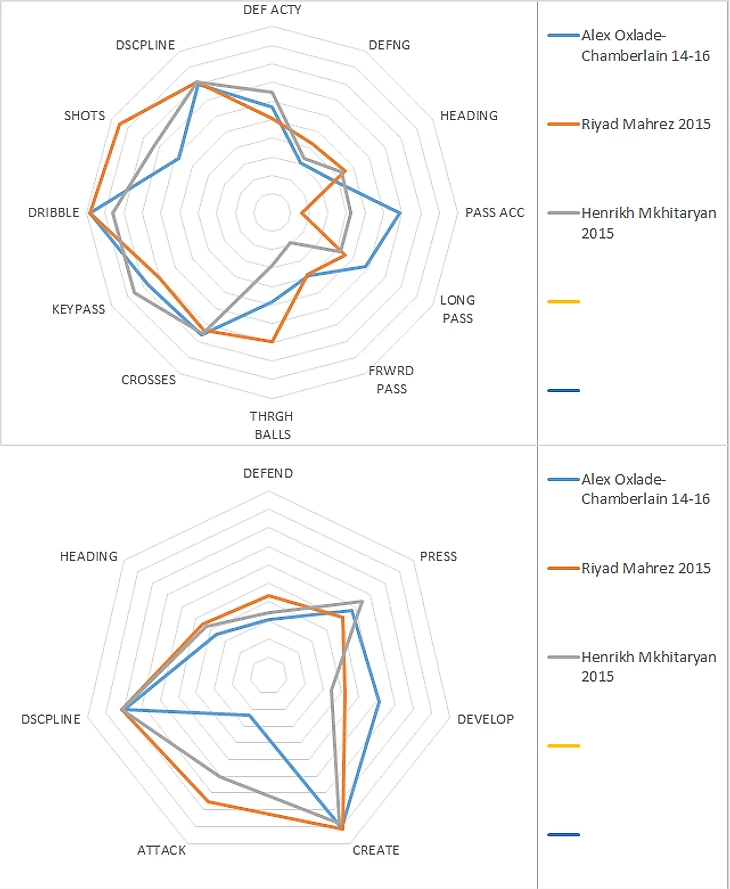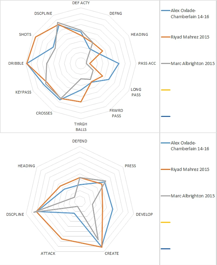 У Мареза и Олбрайтона несколько выше надёжность в обороне, зато у Окса сильно выше качество игры в пас и выход из обороны. Для флангового атакующего игрока выход из обороны у Чемберлена очень даже хорош: