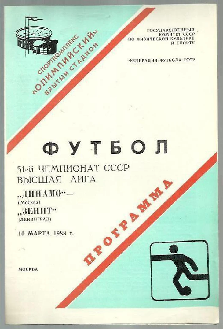 1988 – матч 1 тура чемпионата СССР-1988 «Динамо» (Москва) – «Зенит».